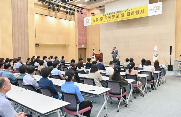 [제주교통복지신문 김강석 기자] 공주시가 직원 간 공감대 형성 및 활기찬 직장 분위기 조성을 위해 지난 31일 아트센터 고마에서 5월 직원모임 및 한마음 화합행사를 개최했다.