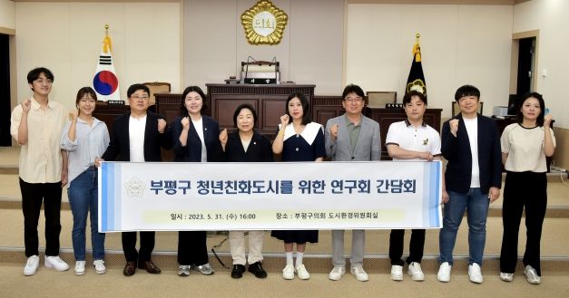 [제주교통복지신문 김강석 기자] 부평구의회 의원연구단체인 ‘부평구 청년친화도시를 위한 연구회’가 지난 31일 부평구의회 도시환경위원회실에서 '청년의 목소리'를 직접 정책에 반영하기 위한 첫 간담회를 개최했다.
