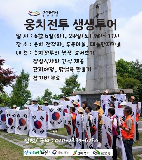 임동빈 문화역사과장은 “6월 호국보훈의 달에 진행되는 웅치·이치전투 생생투어를 통해 이 땅에서 나라를 지키기 위해 치열하게 살아간 민초들의 삶과 희생을 되돌아보는 시간이 되길 바란다”고 말했다.