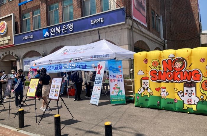 익산시보건소와 전북금연지원센터가 공동으로 부스를 운영하며 흡연자의 폐모양, 담배의 유해물질 등 금연 교육 모형을 전시해 흡연의 심각성을 일깨우고 이동형 금연클리닉을 진행했다.