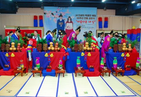 이날 행사에는 결혼 50주년 이상 부부 열 쌍이 참여해 전통 방식으로 금혼식을 올리며 우리 고유의 문화를 전승하고 가족의 의미를 되새기는 시간을 가졌다.