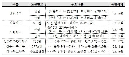 시 관계자는 “신규택지 개발지구는 물론 대중교통 취약지역 주민들의 교통 불편 문제를 해소를 위해 신설노선 및 증차는 물론 수요응답형(DRT) 버스를 도입할 예정이다. 이용자 중심 노선 개편 체계로 시민의 이동권을 보장하겠다.”고 말했다.