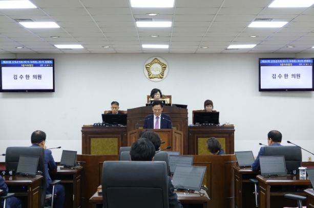 이날 5분 자유발언에서 김수한 의원은 산청군 스포츠 마케팅 활성화 방안, 신동복 의원은 비효율적인 신속집행 대안 마련 촉구, 이영국 의원은 친수공간 조성 및 소하천 관리를 제안했다.
