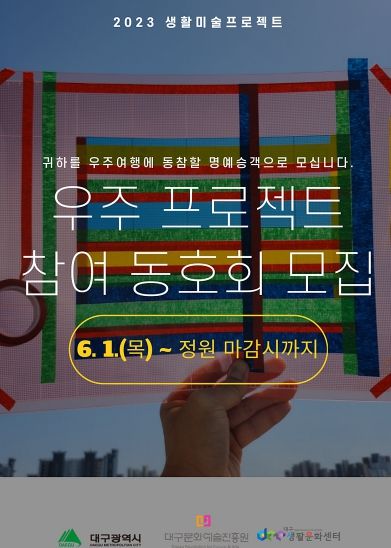 [제주교통복지신문 김강석 기자] (재)대구문화예술진흥원은 시민들의 일상생활 속 문화예술 활동을 장려하기 위한 2023 우수프로그램지원사업 ‘생활미술프로젝트’ 참여자를 상시 모집 중이다.