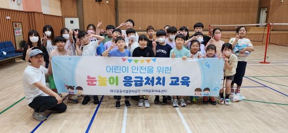 [제주교통복지신문 김강석 기자] 대구공공시설공단 서재문화체육센터는 5월 31일 어린이 회원 60명을 대상으로 ‘눈높이 응급처치 교육’을 개최했다.