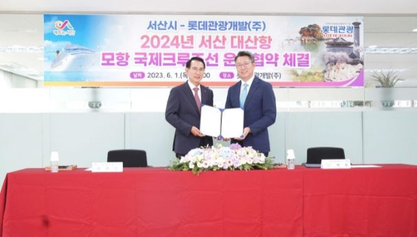 시는 6월 1일 관광레저기업 롯데관광개발과 서산을 모항으로 한 국제 크루즈선 운항 협약을 체결했다고 밝혔다.