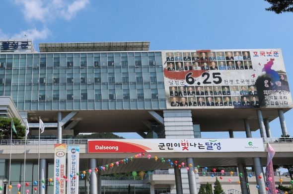 [제주교통복지신문 김강석 기자] 달성군은 6월 호국보훈의 달을 맞아 군 청사 외벽에 대형 현수막(26. 9m×14.2m)을 게시했다. 이 대형 현수막에는 6·25전쟁에서 조국을 지켜낸 달성군 출신 참전영웅의 자랑스러운 얼굴을 담았으며, 6월 한 달간 6·25전쟁 참전영웅에게‘지켜낸 당신, 기억할 우리’라는 존경과 감사의 마음을 전한다.