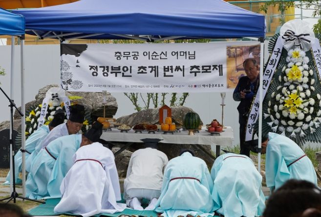 게바위에서 열리는 이순신 장군의 어머니 추모제는 아산시 주최, 충무공이순신백의종군보존회 주관으로 열렸으며, 이날 행사에는 박경귀 시장을 비롯해 김희영 아산시의회 의장, 아산시 유림회원, 지역주민 등 100여 명이 참석했다.