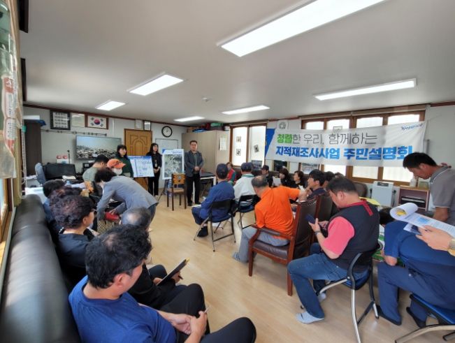 이날 설명회를 통해 주민들에게 ▲지적재조사사업 목적 ▲지구 선정 배경 및 사업추진 절차 ▲토지소유자 동의서 제출 방법 ▲경계설정에 따른 주민 협조사항 등을 안내했다. 이후 주민들의 궁금증 해소를 위한 질의응답이 이어졌다.