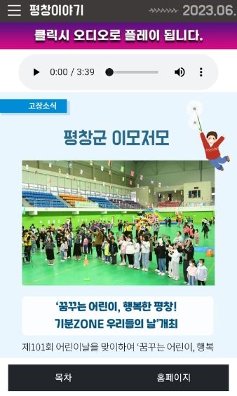 [제주교통복지신문 김강석 기자] 평창군은 군정소식지‘평창이야기’를 6월호부터 지면뿐 아니라 스마트폰으로 편리하게 볼 수 있는 모바일로도 운영한다고 밝혔다.