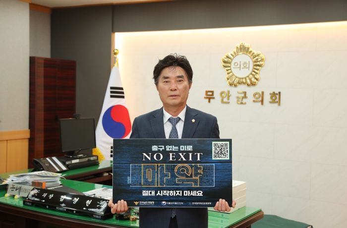 [제주교통복지신문 김강석 기자] 무안군의회 김경현 의장이 지난 2일 마약으로부터 안전한 사회를 만들겠다는 의지를 담아‘출구없음(NO EXIT)’마약 범죄 예방 릴레이 캠페인에 참여했다.