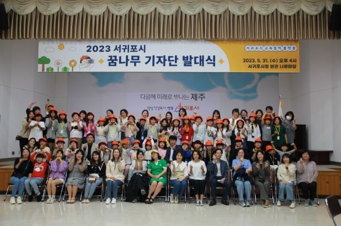 [제주교통복지신문 박희찬 기자] 서귀포시교육청 서귀포시 교육협력 플랫폼에서는 5월 31일 서귀포시청 너른마당에서‘2023 꿈나무 기자단’발대식을 진행했다.