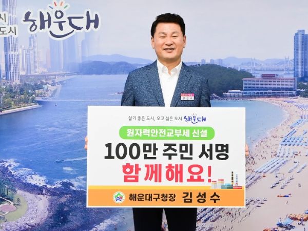 [제주교통복지신문 김강석 기자] 김성수 해운대구청장이 전국 원전동맹 23개 지자체가 원자력안전교부세 신설 촉구를 위해 추진하는 ‘100만 주민 서명운동 홍보 챌린지’에 참여했다.