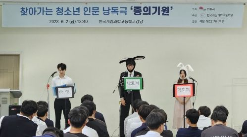 [제주교통복지신문 김강석 기자] 전주시 평생학습관은 2일 완주군 소재 한국게임과학고등학교 강당에서 100여 명의 학생들과 낭독극 ‘종의 기원(김소라 작)’을 함께 관람했다고 밝혔다.