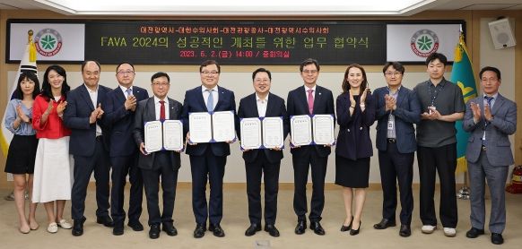 [제주교통복지신문 김강석 기자] 이장우 대전시장은 2일 시청에서 대한수의사회, 대전관광공사 및 대전수의사회와내년 10월 대전에서 열리는 ‘제23차 아시아태평양수의사회 연맹총회(FAVA 2024)’의 성공적인 개최를 위해 상호 협력 업무협약을 체결했다.