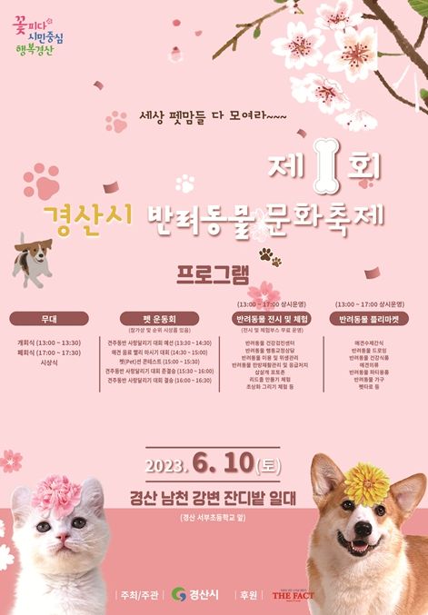 이번 반려동물 문화축제는 경산시가 주최 및 주관하는 행사로 경산시의 동물정책을 홍보하고 생명 존중 문화를 확산하기 위해 처음으로 개최된다. 오후 1시 개막식을 시작으로 ▲반려인동반 사랑달리기 대회 ▲펫(Pet)션 콘테스트 ▲반려동물 건강검진센터 ▲반려동물 행동교정상담 ▲반려동물 한방재활관리 및 응급처치 등 다양한 참여 프로그램과 함께 반려인이라면 지켜야 할 공공장소 펫티켓(펫+에티켓) 홍보 캠페인도 진행한다.