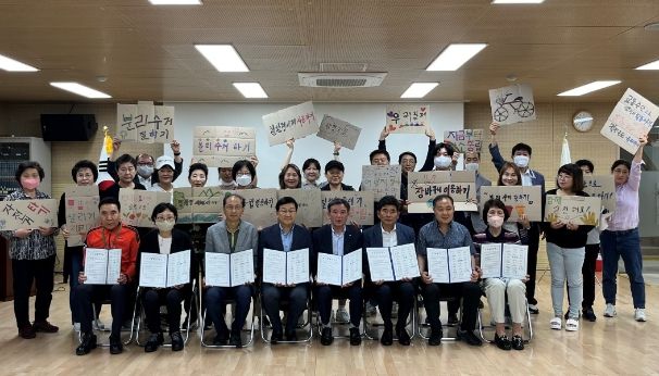 선언식에는 광명2동 9개 유관단체장을 비롯해 강대근 광명2동 경로당 회장, 김정숙 다솜 지역아동센터장, 남규복 뉴타운 골목상점 상인회장 등 관내 주요 단체장과 주민자치회 위원 30여 명이 참석했다.