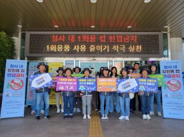 이번 캠페인은 ‘일회용 컵 없는 청사’ 조성을 목표로 다회용 컵 사용 활성화를 위해 점심시간 등 외출 시 텀블러나 다회용 컵 사용·회수 독려, 청사 내 종이컵 등 일회용품 사용 최소화, 회의 및 민원인 응대 시 종이컵 사용 최소화 등 적극적인 참여를 유도했다.
