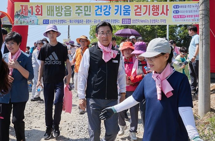 이날 행사에는 어린이를 비롯한 어르신까지 다양한 연령층의 주민 과 박경귀 아산시장, 김희영 시의회의장, 지역 기관단체장 등 1100여명이 참여해 삼성전자 온양사업장에서 출발하여 윤정사를 지나 다시 집결하는 4.5km코스를 함께 걸으며 건강의 소중함을 함께 느꼈다.