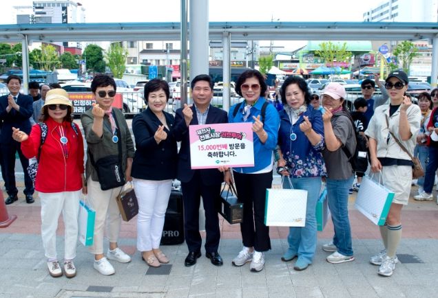 이 가운데 시는 지난 3일 제천역 앞 광장에서 전통시장 러브투어 만오천번째 방문객 환영식도 진행했다. 김창규 제천시장, 이정임 제천시의회 의장이 참석한 가운데 1만 5천번째 관광객에게 소정의 지역특산품을 선물했다.