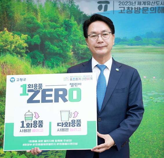 [제주교통복지신문 김강석 기자] 심덕섭 고창군수가 5일 1회용품 사용줄이기를 약속하며 ‘1회용품 제로 챌린지’에 동참했다.