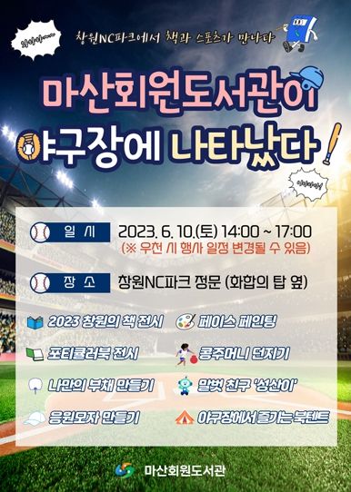 [제주교통복지신문 김강석 기자] 마산회원도서관은 10일 오후 2시부터 5시까지 창원NC파크에서 도서관과 야구장의 이색적인 만남인 ‘마산회원도서관 홍보부스’를 운영한다고 밝혔다.