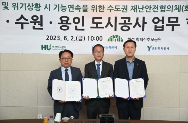 [제주교통복지신문 김강석 기자] 화성도시공사(사장 김근영)는 화성 함백산추모공원에서 전국 최초로 수원도시공사(사장 허정문), 용인도시공사(사장 최찬용)와 함께 ‘수도권 재난안전협의체’ 본 협약을 체결했다고 5일 밝혔다.