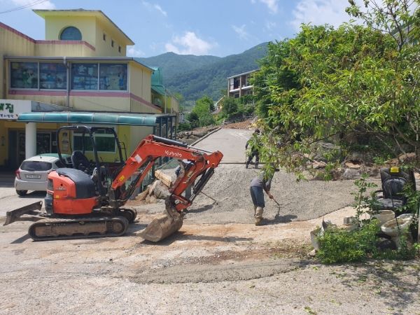 이에 남면번영회는 관내 건설업체 금강건설과 동방레미콘의 지원을 받아 남면 무릉리 748-22일원에 레미콘 2대, 포크레인 1대, 로울러 1대, 인력 5명을 투입해 21㎡의 흙길 포장을 완료했다.