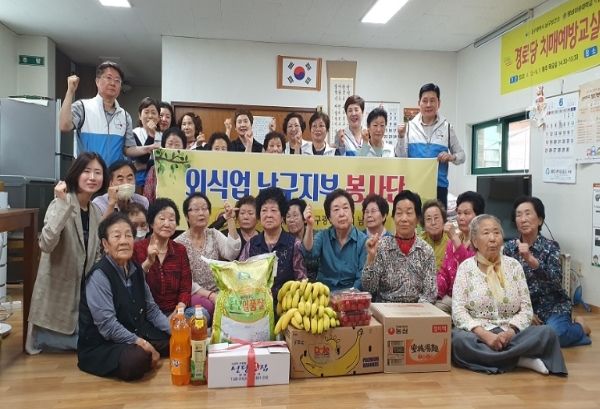 [제주교통복지신문 김강석 기자] 한국외식업중앙회 대구남구지부 부녀회 봉사단에서 지난 1일, 대명3동 관내 경로당을 방문하여 어르신의 건강한 여름나기를 돕기 위해 백미, 라면, 과일 등 물품을 전달하고 급식봉사를 했다.
