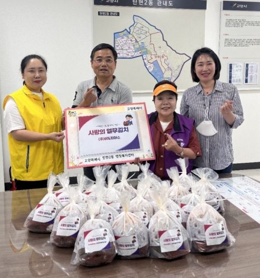 이날 행사에서 ㈜위드파머스는 고양시 자원봉사단체와 함께하는 따뜻한 사회를 만들기 위해 직접 재배한 농산물로 만든 열무김치 20박스를 탄현2동 행정복지센터에 전달했다. 후원받은 김치는 독거노인 및 장애인 등 식사준비가 어려운 관내 이웃에 전달할 예정이다.