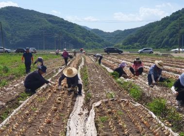 의령군 공무원들은 이틀 동안 마늘·양파 22개 농가에 투입됐다.