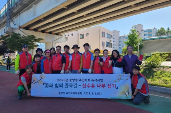 유재학 주민자치위원장은 “전철 교각 하부 공간이 시민을 위한 쉼터로 탈바꿈한 것에 뿌듯함을 느낀다”라며 “매년 가을(10~11월경)마다 산수유 열매를 수확하여 산수유청 등을 담가 중앙동 관내 경로당에 나눔봉사를 실시할 예정이다”고 밝혔다.