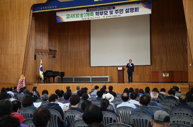 지난 2일 성지여자고등학교 강당에서 열린 ‘공간혁신 사업 교사(校舍) 개축 학부모 및 주민 설명회’에는 경남교육청 및 창원교육지원청 관계자, 창원시 관계자 및 주민 200여 명이 참석했다.