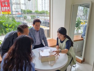 다음으로는 동부동에 위치한 ‘앙금앙금’을 방문했다. ‘앙금앙금’을 운영하는 청년창업가는 떡 디저트를 주력으로 판매하고 있으며 돌, 백일, 생일 등 각종 기념일뿐만 아니라 경조사 답례품까지 판매하고 있어 넓은 소비자 기호에 맞춰 선보이고 있으며 영천시에서 청년창업가의 새로운 판로 개척을 위해 시행 중인 ‘청년고리 로컬마켓’에서도 준비된 디저트가 금방 소진될 만큼 시민들에게도 인기와 관심이 많은 사업장이다.