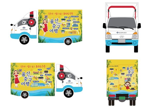 ‘찾아가는 울산 중구 관광홍보관’은 트럭을 개조해 만든 이동식 홍보관으로, 외관은 울산 중구의 주요 관광지 및 울산큰애기 그림으로 꾸며져 있고 내부에는 무인 안내기(키오스크) 등이 설치돼 있다.