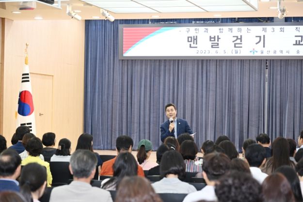 [제주교통복지신문 김강석 기자] 울산 중구가 5일 오후 2시 중구청 대회의실에서 직원 및 구민 300여 명을 대상으로 맨발걷기에 대한 교육을 진행했다.