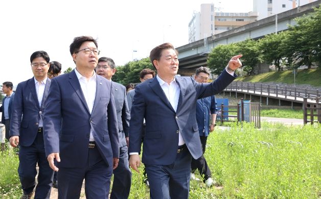 염태영 경기도 경제부지사는 5일 오후 안양천 지방정원 조성 예정지를 방문하고 지방정원조성계획 승인 등 행정적 절차에 대한 박승원 광명시장의 협조 요청에 대해 “원활한 지방정원 조성을 위해 경기도 차원에서 최대한 행정 지원하겠다”고 답했다.