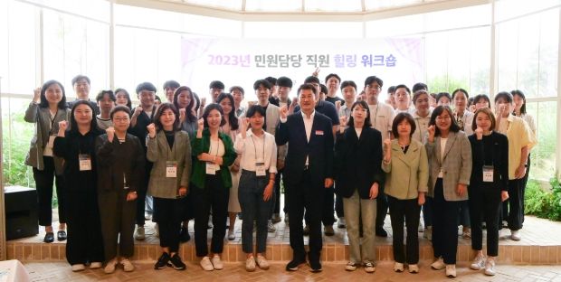 이번 워크숍은 갈수록 복잡다양해지는 행정환경 변화와 특이(악성)민원 증가에 따른 직원들의 감정노동 스트레스 해소를 목적으로 민원현장 일선에서 근무하는 직원들의 노고를 격려하고 지친 몸과 마음을 치유할 수 있는 힐링 프로그램으로 진행했다.