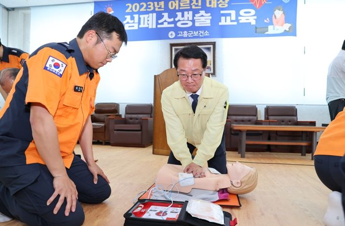 [제주교통복지신문 김강석 기자] 전라남도는 응급상황 발생 시 어르신 심정지 환자 소생률 향상을 위한 ‘어르신 대상 심폐소생술(CPR) 교육’을 지난 5일 고흥 동강면 경로당에서 추진했다.