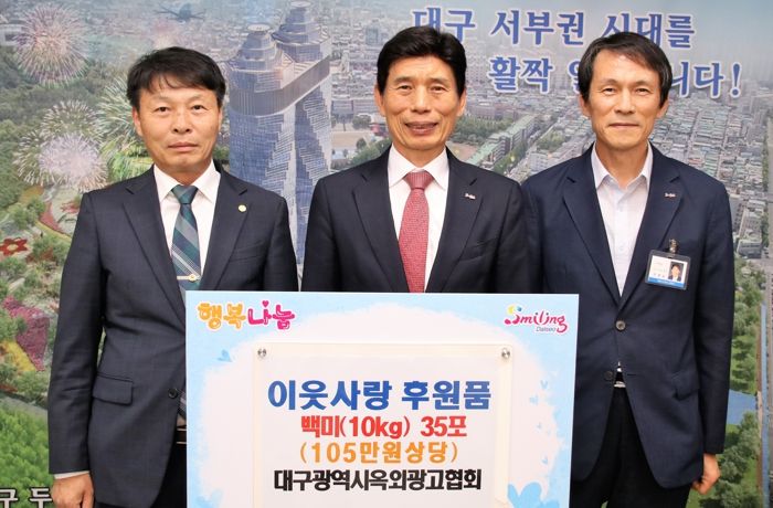 이태훈 달서구청장은 “인플레이션 등 경기 침체로 인해 나눔의 손길이 줄고 있는 시기에 나눔을 실천해 주신 대구광역시옥외광고협회에 감사드리고, 후원품은 도움이 필요한 소외계층에게 잘 전달하겠다.”고 말했다.