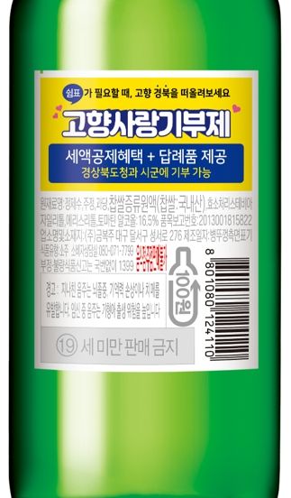 김종수 경북도 자치행정국장은 “오랜 세월 영남의 대표 소주로 자리매김하고 있는 ‘깨끗한 아침, 참’에 홍보 라벨이 부착되면 고향사랑 기부제 활성화에 큰 도움이 될 것”이라며 “고향사랑기부제가 지방재정을 확충하고 지역경제 활성화에 기여할 수 있도록 앞으로도 다양한 홍보 방안 모색에 노력하겠다”라고 밝혔다.
