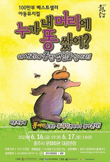 [제주교통복지신문 김강석 기자] 충주시는 한국문화예술회관연합회가 주최하고 충주시문화회관이 주관하는 방방곡곡 문화공감 사업 프로그램 ‘누가 내 머리에 똥 쌌어?’를 충주시문화회관에서 오는 16일과 17일 이틀간 선보인다고 밝혔다.
