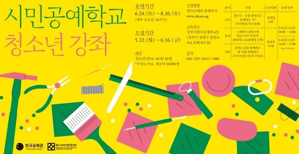 청주시한국공예관은 7일 공고문을 내고 오는 13일부터 21일까지 ‘시민공예학교’ 수강생을 모집한다고 밝혔다.