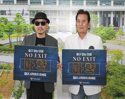 [제주교통복지신문 김강석 기자] 배우 김성환과 가수 박상민은 지난달 31 대전경찰청을 방문한 길에 마약범죄 예방을 위한 ‘NO EXIT 마약 퇴치 릴레이 캠페인’에 자발적으로 동참했다고 밝혔다.
