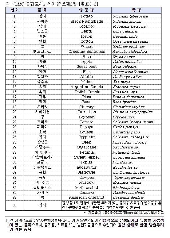 셋째, 미승인 유전자변형생물체(LMO) 종자의 수입․유통 관리 역량을 강화한다. 우선, ①유전자변형생물체(LMO) 검사 전담 조직을 확대하고, ②통관단계에서 엑스-레이(X-ray) 검색 역량을 강화하기 위하여 설비 확충 및 관세청과 협력을 강화한다. 아울러, ③국내 생산 및 유통과정에서 미승인 유전자변형생물체(LMO) 검출 시 농가의 자발적 협력을 이끌어 내기 위하여 경제적 지원에 대한 법적 근거를 마련한다.