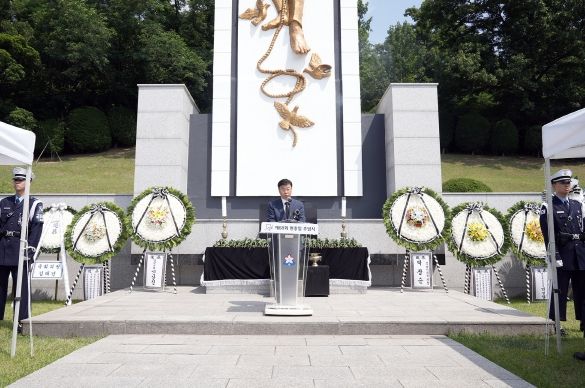 신 시장은 추념사에서 “오늘날 우리가 누리는 자유와 번영은 조국을 위해 온몸을 던지신 순국선열과 호국영령들이 없었다면 불가능했음을 잘 알고 있다”면서 “개인의 일신과 평안보다 나라를 위해 목숨까지 바치신 호국영령들의 영전에 삼가 머리 숙여 애도를 표하고 사랑하는 가족을 떠나보내야 했던 유가족 여러분께는 위로의 말씀을 드린다”고 말했다.
