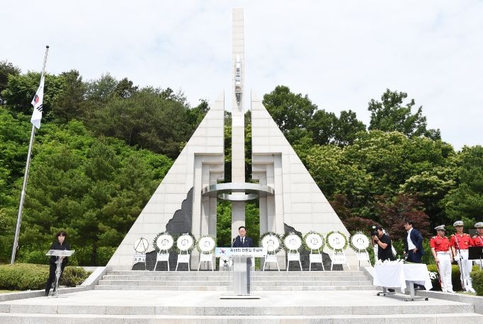 추념식에서는 국민의례에 이어 오전 10시 전국에서 동시에 울린 사이렌 취명에 맞춰 1분간 호국영령의 넋을 기리는 묵념을 올렸다.