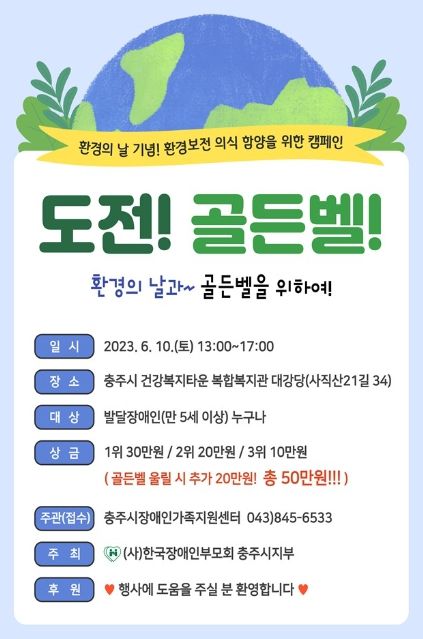 제28회 환경의 날을 맞아 (사)한국장애인부모회 충주시지부가 주최하고 충주시장애인가족지원센터가 주관하는 이날 대회에는 지적 기량을 펼치고 도전 의식을 고취 시키고자 충주시 발달장애인 50여 명이 참여했다.