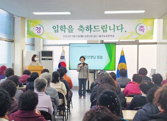 충주늘푸른학교는 2011년 문을 열고 성인문해자에게 한글기초, 컴퓨터교육, 초·중 학력인정 교육, 검정고시 등 14개 학급을 운영 중이다.