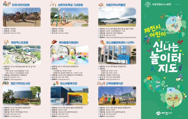 [제주교통복지신문 김강석 기자] 아동친화도시 제천시에서 지역 곳곳에 있는 놀이터와 아동 관련 시설을 한데 모은 ‘제천시 신나는 어린이 놀이터 지도’를 공개했다.